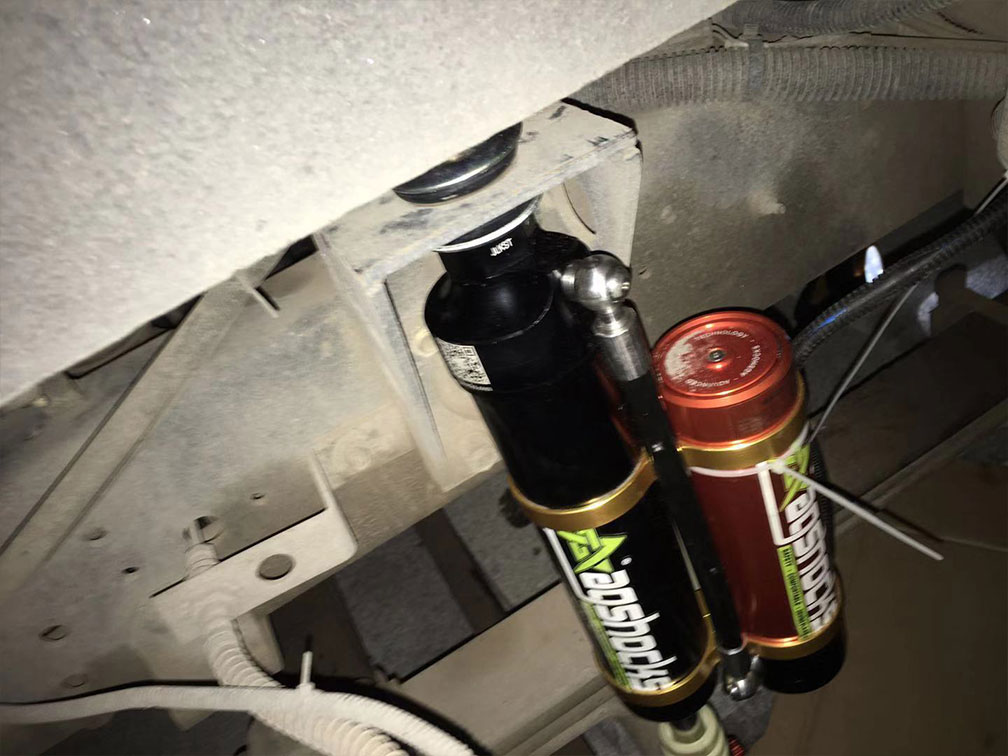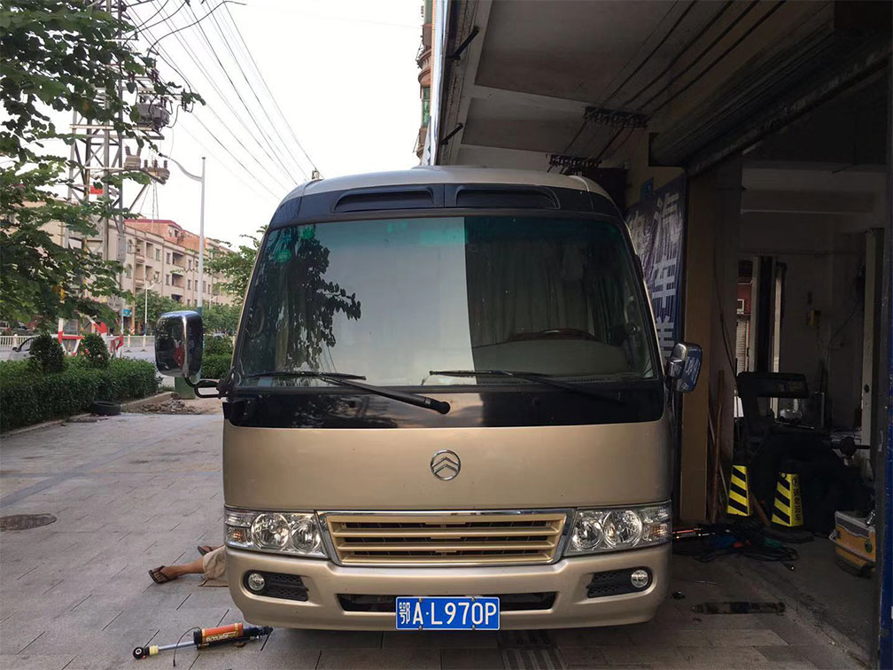 湖北武漢金旅考斯特房車改裝霸哥電控100段氮?dú)鉁p震器邊開邊調(diào)