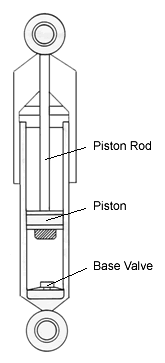 減振器主要為油泵。其活塞桿末端連接了一個(gè)活塞,經(jīng)由壓力管里的液壓油工作。懸架上下運(yùn)動(dòng)時(shí),液壓油強(qiáng)制進(jìn)入活塞內(nèi)的微孔(也叫做孔口)。然而,孔口僅能使少量油液進(jìn)入活塞。這無疑會(huì)使活塞運(yùn)動(dòng)變慢,進(jìn)而使彈簧和懸架的運(yùn)動(dòng)也變慢。