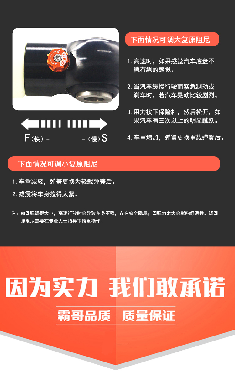 越野減震器:質(zhì)保一年!一年內(nèi)因產(chǎn)品品質(zhì)原因造成漏油,可享免費(fèi)質(zhì)保服務(wù)!